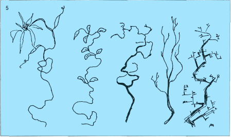 Горошек, глориозу, стефанотис относят к извилистым формам роста, а колючую сливу, пробковый орех, яблоню — к изломанным. Эти растения хотя растут прямо, но имеют много мягких или резких изменений роста. Очень интересно сочетание таких форм с прямыми, строгими растениями. Подрезка стеблей и веток, выполненная определенным образом, усиливает выразительность движения растительного материала.