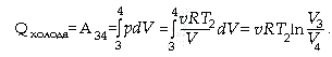 Участок 3 - 4: изотермическое расширение при температуре Т2 < T1, при котором количество теплоты |Qхолод| возвращается в резервуар.
