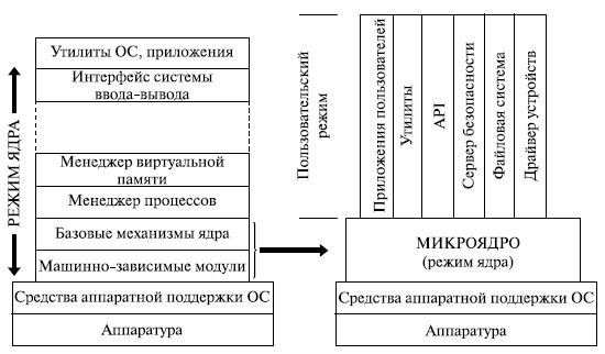 Многослойная классическая многоуровневая архитектура ОС не лишена своих проблем. Дело в том, что значительные изменения одного из уровней могут иметь трудно предвидимое влияние на смежные уровни. Кроме того, многочисленные взаимодействия между соседними уровнями усложняют обеспечение безопасности. Поэтому, как альтернатива классическому варианту архитектуры ОС, часто используется микроядерная архитектура ОС.
