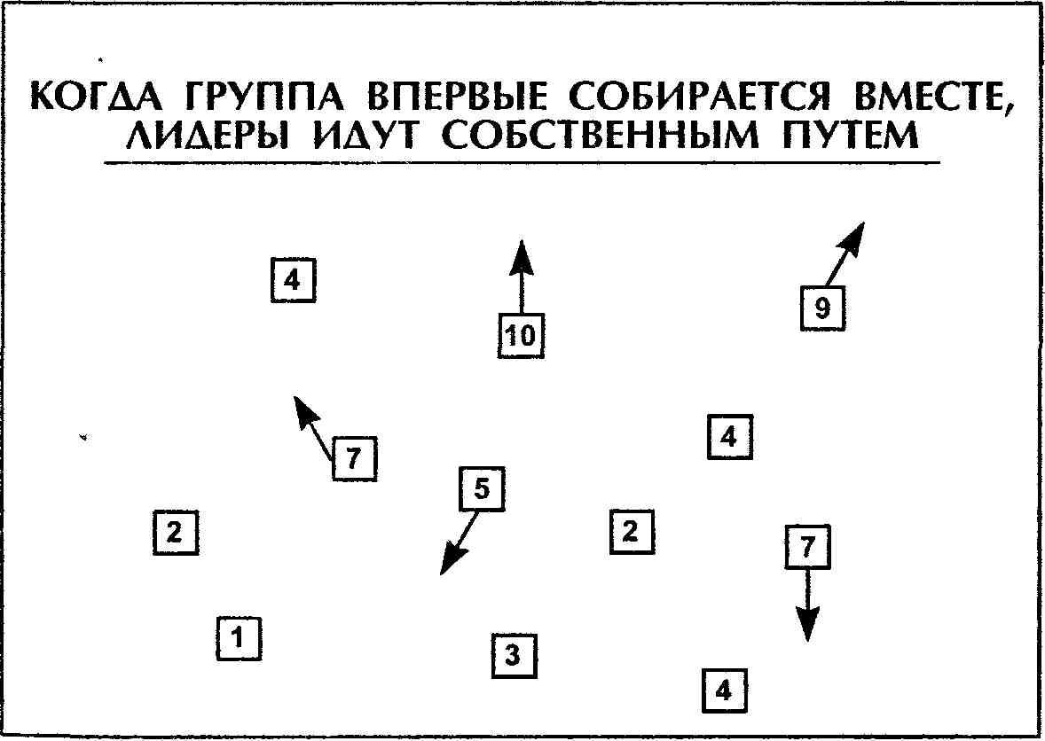 Обычно бывает так: чем большей способностью к лидерству обладает человек, тем быстрее он распознает качества лидера или их отсутствие в других. Приходит время, когда все люди в составе группы сплачиваются воедино и следуют за самыми сильными лидерами. Либо события развиваются именно таким путем, либо люди покидают данную группу и начинают преследовать собственные цели.