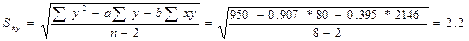 Стандартное отклонение уравнения регрессии рассчитывается по формуле: