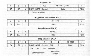 Тем не менее на практике в сетях Ethernet на канальном уровне используются кадры 4 различных форматов (типов).