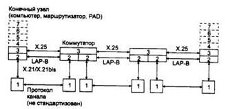 Стандарты сетей Х.25 описывают 3 уровня протоколов.