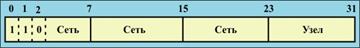 Адреса класса B. Сети класса В определяются значениями 1 и 0 в старших битах адреса. Первые два октета в адресе (биты с 0 по 15) служат для представления адресов сетей, а оставшиеся два октета представляют номера хостов в этих сетях.