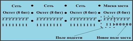 Биты заимствуются из поля хост–машины и переопределяются в качестве поля подсети
