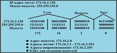 Таким образом, хост – машины подсети 201.222.5.16 будут адресоваться как 201.222.5.17, 201.222.5.18, 201.222.5.19 и т.д. номер хоста 0 зарезервирован в качестве адреса кабеля, а значение номера хоста, состоящее из одних единиц, резервируется для широковещания.