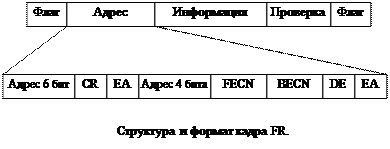 FR является бит –ориентированным синхронным протоколом, использующим кадр в качестве основного информационного элемента (в этом похож на HDLC). Однако FR не обеспечивает все функции протокола HDLC, поэтому многие элементы кадра HDLC исключены из основного формата кадра FR (в кадре FR адресное поле и поле управления совмещены в одно адресное поле)