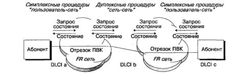 При функционировании МПВК составные FR сети будут управляться со стороны как пользователя, так и соседней сети. Таким образом, в ИСС используются двунаправленные процедуры управления, то есть каждая из сторон интерфейса имеет право запрашивать у другой стороны информацию о статусе транзитного ПВК, так же как и информировать другую сторону о статусе ПВК. Более того, эти двунаправленные процедуры могут осуществляться асинхронно (с целью отслеживания состояния каналов в реальном масштабе времени).