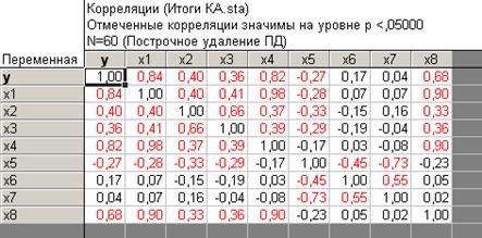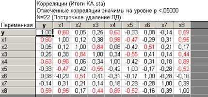 Шаг 6. После нажатия кнопки ОК переходим к матрице парных коэффициентов корреляции по первым 22 наблюдениям (рисунок 4.37).