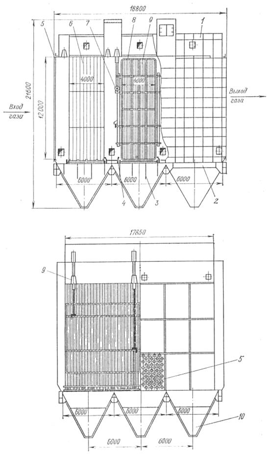 Конструкция промышленного пластинчатого электрофильтра приведена на рисунке 7.