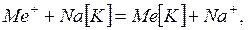 Если катионит находится в Н+ форме, то обмен катионов происходит по реакции: