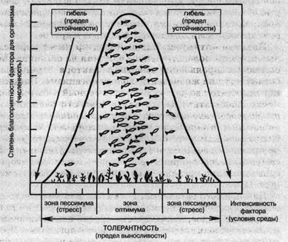 Понятие о влиянии максимального значения фактора, выход за пределы которого ограничивает жизнедеятельность организма, ввел в 1913 году американский зоолог В. Шел-форд. Оно отражено в законе максимума, или законе толерантности (от лат. tolerantia — терпение), который иногда называют правилом Шелфорда. Закон толерантности гласит: присутствие или процветание каких-либо организмов в данном местообитании зависит от комплекса экологических факторов, к каждому из которых у организма существует определенный диапазон толерантности — выносливости. Диапазон устойчивости по каждому фактору ограничен его минимальными и максимальными значениями, в пределах которых только и может существовать организм (экологический стандарт вида).