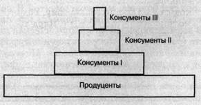 Соотношение численностей, биомасс, и продукций (потоков энергии) популяций, относящихся к последовательным трофическим уровням, называют экологическими пирамидами. Их изображают в виде диаграмм, где ширина столбиков отражает соответствующий показатель каждого из уровней (рис. 26).
