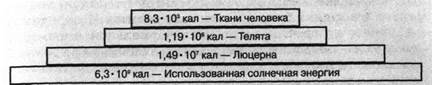 3. Пирамида энергии — разновидность пирамиды биомасс, в которой представлено количество энергии, заключенной в каждом из трофических уровней экосистемы или проходящей через эти уровни (рис. 31).