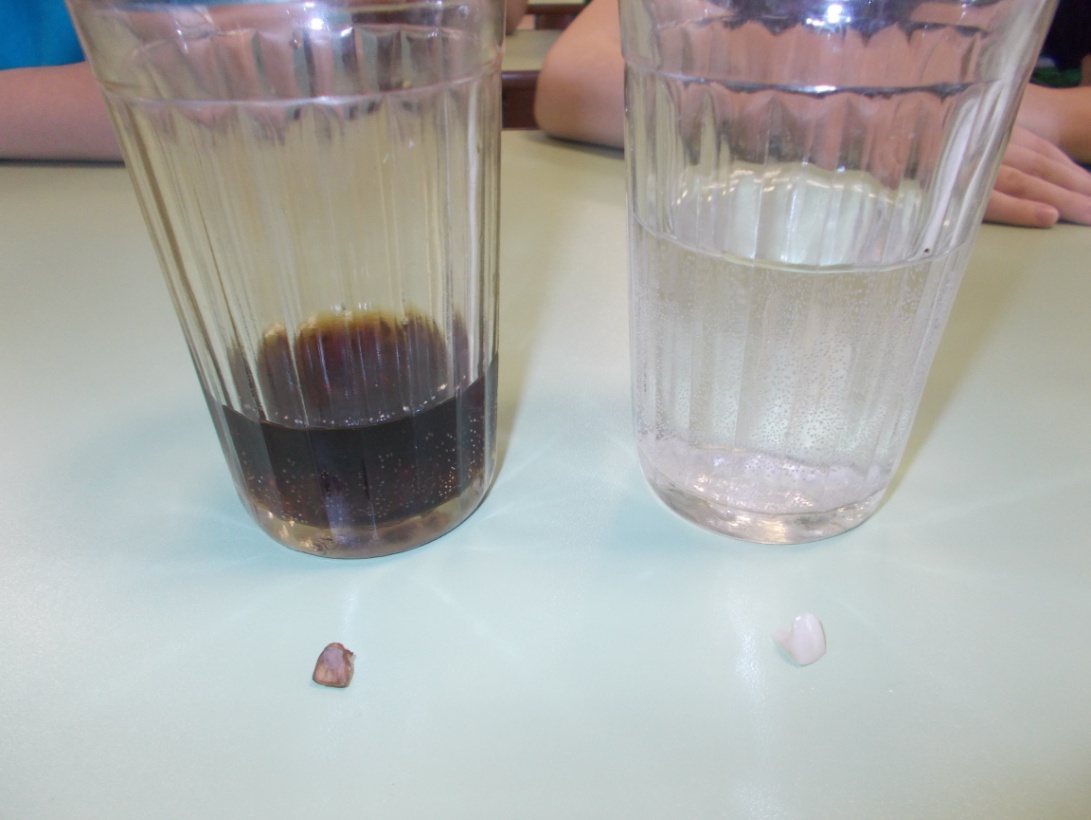 Опыт: Влияние «пепси- колы» и воды на молочные зубы