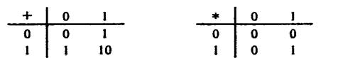 Таблица 1.5. Таблицы сложения и умножения в двоичной системе