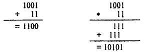 Заметим, что при двоичном сложении 1 + 1 возникает перенос единицы в старший разряд - точь-в-точь как в десятичной арифметике: