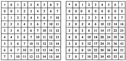Таблица 1.7 Таблицы сложения и умножения в восьмеричной системе