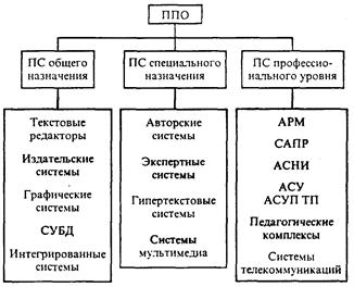 Один из возможных вариантов классификации программных средств (ПС), составляющих прикладное программное обеспечение (ППО), отражен на рис.2.11. Как и почти всякая классификация, приведенная на рисунке не является единственно возможной. В ней представлены даже не все виды прикладных программ. Тем не менее, использование классификации полезно для создания общего представления о ППО.