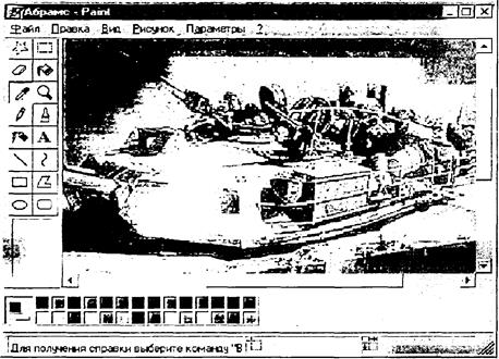Графический редактор Paint, входящий в комплект стандартных программ MS Windows 95, позволяет, используя манипулятор «мышь», выполнять черно-белые и цветные рисунки, обрамлять их текстом, выводить на печать. В Paint можно работать с фрагментами графических изображений: копировать, перемещать, поворачивать, изменять размеры, записывать на диск и считывать с диска. С помощью Paint можно обрабатывать графические изображения, а также считывать и записывать в файл полностью или частично изображение с дисплея, если монитор работает в графическомрежиме.