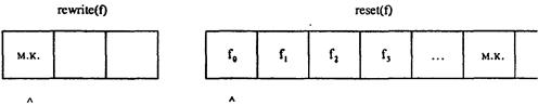 Здесь т.м. - текущий маркер, указывающий на рабочую позицию (окно) файла; м.к. (маркер конца файла) - специальный код, автоматически формируемый вслед за последним элементом файла.