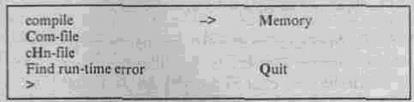 (компиляция) компиляция проводится в память, режим компиляции (в СОМ или CHN файлы) меняют по команде «О» (см. compiler Options);