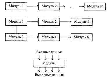 Каждый модуль предполагает входящую информацию, состоящуюиз набора необходимых понятий из других модулей и предметных областей, а на выходе создает совокупность новых понятий, знаний, описанных в данном модуле, рис. 6.13.