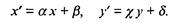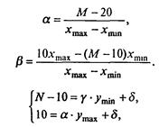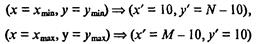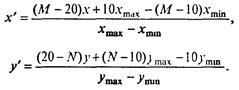 Если известны разрешающая способность экрана - М точек по оси х' и N точек по оси у', то для нахождения коэффициентов α, β, γ, δ достаточно связать любые две точки в разных системах координат, например