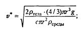 Пусть r = 0,1 м, ρ = 0,8∙103 кг/м3 (дерево). При падении в воздухе v* ≈ 960 м/с, в воде v *≈ 17 м/с, в глицерине v* ≈ 0,012 м/с.
