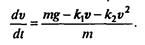 можно найти из условия mg – k1v – k2v2 = 0, решая не дифференциальное, а квадратное уравнение. Имеем