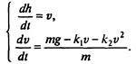 Приведем конкретный пример решения задачи о свободно падающем теле. Герой знаменитого фильма «Небесный тихоход» майор Булочкин, упав с высоты 6000 м в реку без парашюта, не только остался жив, но даже смог снова летать. Попробуем понять, возможно ли такое на самом деле или же подобное случается только в кино. Учитывая сказанное выше о математическом характере задачи, выберем путь численного моделирования. Итак, математическая модель выражается системой дифференциальных уравнений