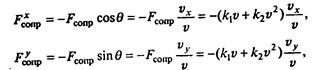 Величины F1 и F2 сопоставимые (как принято говорить, «одного порядка», так как они различаются менее, чем в 5 раз). При увеличении размера тела F2 растет быстрее, чем F1 (F1 ~ r, F2 ~ r2), при увеличении скорости F2 также растет быстрее, чем F1 (F1 ~ v, F2 ~ v2). Таким образом, если мы моделируем движение брошенного мяча, камня, то необходимо в уравнениях удерживать обе составляющие силы сопротивления, но если мы захотим моделировать полет снаряда, выпущенного из орудия, где скорость полета почти на всем его протяжении сотни метров в секунду, то линейной составляющей силы сопротивления можно пренебречь. Проецируя уравнение