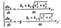 , получаем уравнения движения в переменных vx, vy.