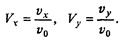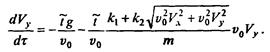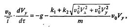 - безразмерные расстояния по осям и время, - то при отсутствии сопротивления воздуха эти переменные будут изменячься в диапазоне от 0 до 1, а в задаче с учетом сопротивления отличия их максимальных значений от единицы ясно характеризуют влияние этого сопротивления. Для скоростей естественно ввести безразмерные переменные, соотнося проекции скорости на оси x и у с начальной скоростью v0: