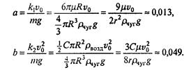 Полученные формулы могут, в частности, послужить для тестирования будущей компьютерной программы. При достаточно большой начальной скорости сопротивление воздуха может значительно изменить характер движения. Прежде чем выписывать уравнения, вновь оценим, какая из составляющих силы сопротивления - линейная или квадратичная по скорости - дает больший вклад в эту силу, и нельзя ли одной из этих составляющих пренебречь. Оценку проведем для шарика; по порядку величины оценка не зависит от формы тела. Итак, шарик радиусом r ≈ 0,1 м, движущийся со скоростью ~ 1 м/с, испытывает в воздухе линейную (стоксову) силу сопротивления