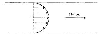 Рис. 7.24. Распределение скоростей в потоке жидкости, движущейся в трубе