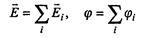 принцип суперпозиции означает необходимость векторного сложения, к φ — «обычного» (с учетом знаков отдельных потенциалов).