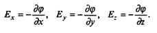 Зная потенциал в каждой точке поля, т.е. функцию Ф = φ (х, у, z), можно найти напряженность в каждой точке чисто математическим путем, отражающим тот факт, что проекция вектора напряженности на любое направление есть скорость изменения потенциала в этом направлении: