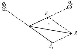 Рис. 7.25. Нахождение напряженности электрического поля по принципу суперпозиции