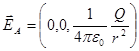 для одного точечного заряда. Действительно, фиксируем некоторую точку А поля на расстоянии r от заряда Q и введем локальную систему координат с центром в А; у этой системы ось r является продолжением радиуса-вектора r, а две другие оси –х и у - перпендикулярны к ней. Примем, что