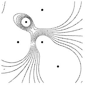 Учитывая трудности визуализации трехмерных изображений, целесообразно ограничиться (по крайней мере вначале) рассмотрением ситуаций, когда все заряды лежат в одной плоскости; тогда силовая линия, начинающаяся из любой точки данной плоскости, из этой плоскости не выйдет, и получится легко воспринимаемая картина.