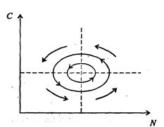 численность популяции жертвы и наоборот. Такие колебания численности будут продолжаться в соответствии с моделью до тех пор, пока какое-либо внешнее воздействие не изменит численность популяций, после чего произойдет переход в новое устойчивое состояние (такая ситуация называется «нейтральные устойчивые циклы»).