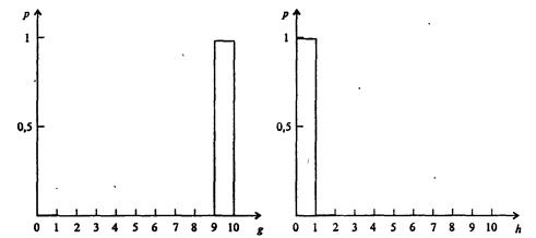 Рис. 7.57. w1 = 10, w2 = 3 (нет проблем с обслуживанием, вероятность долго простоять в очереди мала, вероятность бездеятельности продавца достаточно велика)