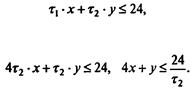 Обозначим число выпускаемых за день мотоциклов х, велосипедов - у. Пусть τ1 -время (в часах), уходящее на производство одного мотоцикла, а τ2 - одного велосипеда. Из условия задачи следует, что τ1 = 4 τ2. Если завод работает круглосуточно, то, очевидно, при одновременном выпуске обоих изделий
