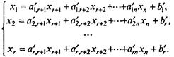 Неизвестные x1, x2,..., xr - базисные неизвестные, набор { x1, x2,..., xr } называется базисом, а остальные неизвестные { xr+1, xr+2,..., xn } - свободные. Подставляя (7.86) в (7.81), выразим функцию