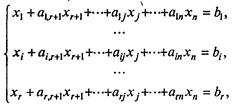 Ранее мы предполагали, что если система ограничений задана в виде (7.85),топеред первым шагом она уже приведена к виду (7.86), где bi ≥ 0 (i = 1, 2,..., r). Последнее условие необходимо для использования симплекс-метода. Рассмотрим вопрос об отыскании начального базиса.