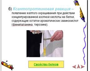 Кроме биуретовой реакции существует еще ряд цветных реакций, позволяющих доказать наличие отдельных фрагментов белковой молекулы, например ксантопротеиновая.