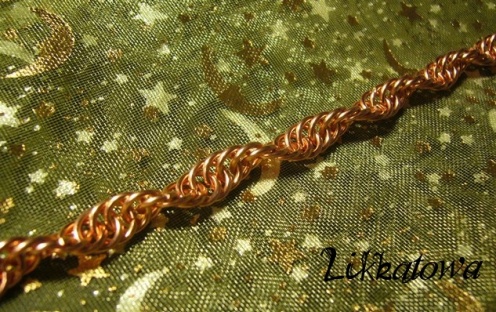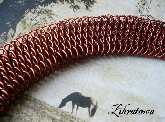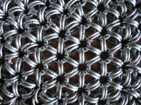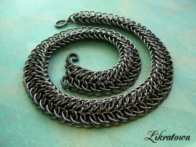 Преимущества такой кольчуги по сравнению с другими являются удобство изготовления, меньший вес, а минусами является длительность изготовления.