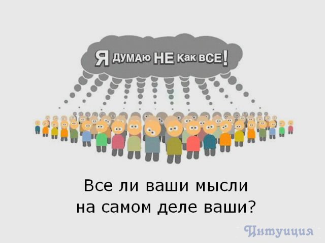 К тому же люди в большинстве своём даже не задумываются о том, что содержимое их психики — это не их собственное достояние, а по большей части пришло извне. Не зря же говорят: «О, мысль пришла!» А откуда пришла, что произойдёт с психикой, если она увлечётся этой мыслью — об этом задумываются мало.