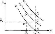 ожидаемым и действительным уровнем заработной платы, гтредло-| жсние рабочей силы уменьшается. Экономика оказывается в состоя-! нии, которое характеризуется прежним уровнем безработицы (Ua) и; полым уровнем цен. На рис. 1 это соответствует перемещению вточ-; ку Ср находящуюся на кривой FY